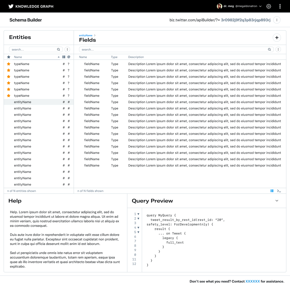 Product designer for the Twitter Internal Tools Design team (Mar 2021 - Nov 2021); responsible for generating resource-aware, scalable, user-first solutions for Twitter’s internal tools used by highly technical teams, multiple concurrent projects including a guided schema builder and scalable large network browser.