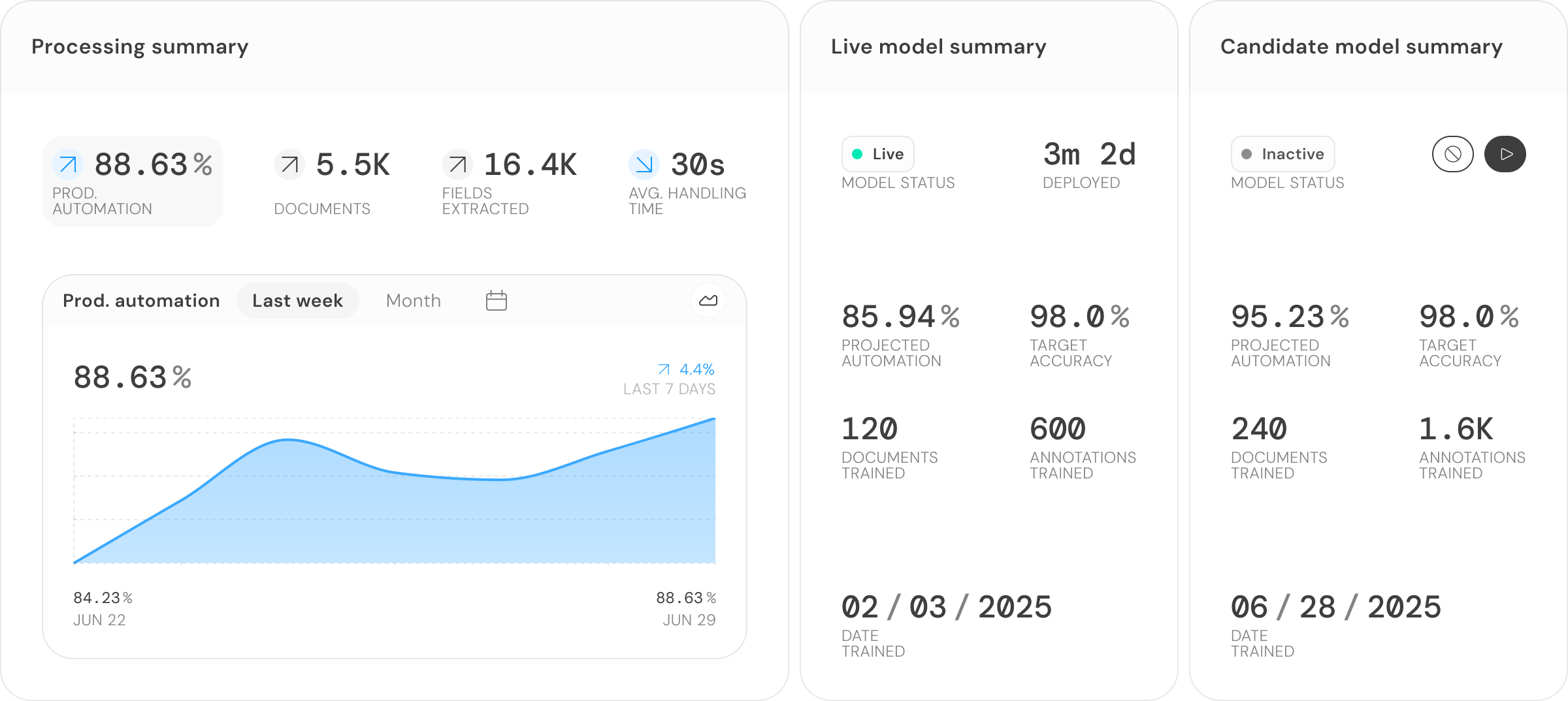The Consistent Model Management (CMM) framework drastically reduced implementation time from months to days, training times for use-cases with trainable models by 50%, AND enabling seamless, day 1 automation with out of the box models.