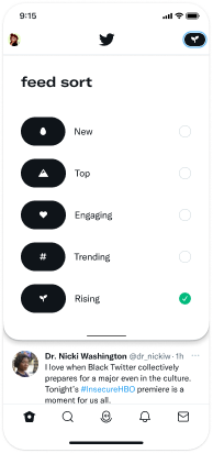 Product designer on the Home Feed team at Twitter (Nov 2021 - Apr 2022), designed intuitive interfaces for high-traffic web applications, focusing on engagement, user choice, and algorithmic control.